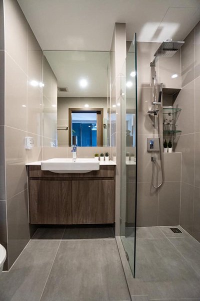 – modern bathroom with walk-in shower