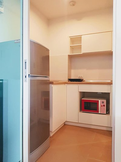– closed kitchen with Refrigerator, microwave